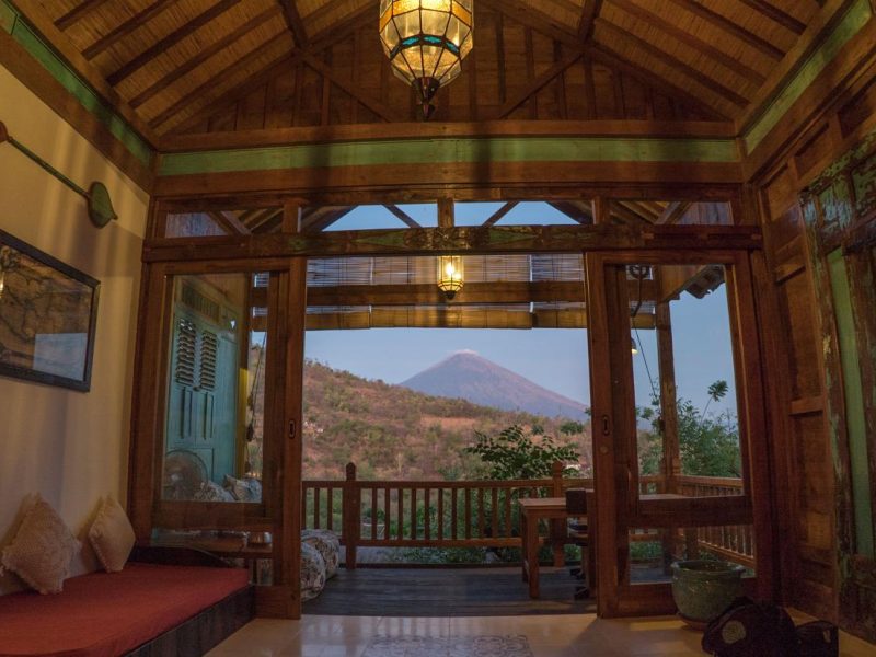 All our rooms are different and made with comfort and style. The two deluxe rooms have stunning ocean and volcano views, our antique wooden house is made using Javanese wood and features a private garden and large terrace. The two adobe rooms have their own shared yoga shala upstairs while our dutch deco rooms have many well thought out details are perfect for couples or friends.