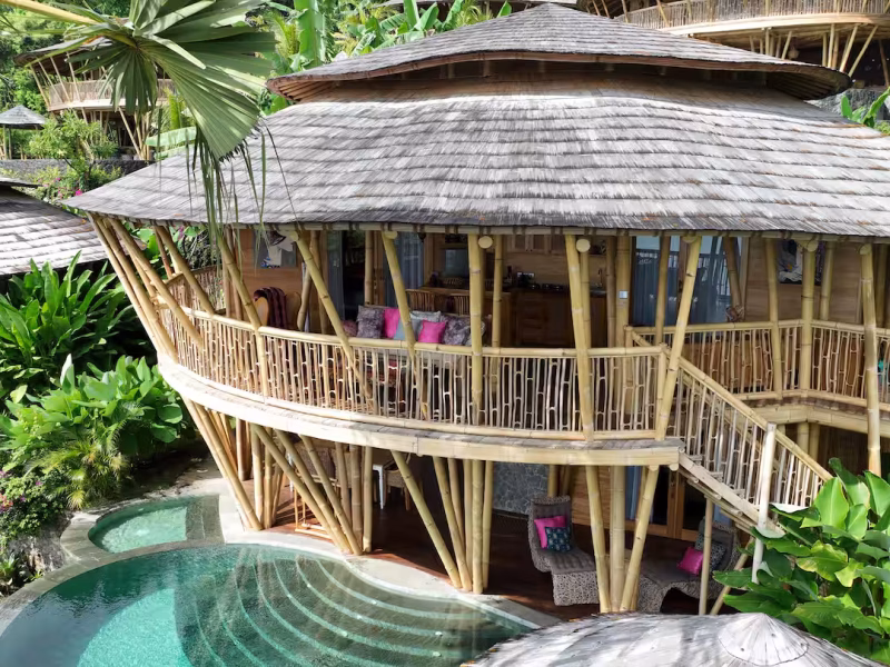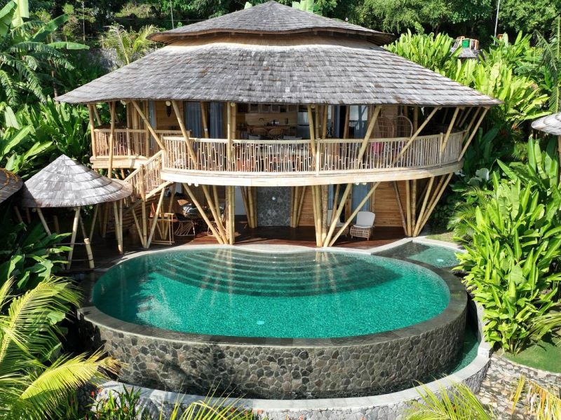 Villas Bukit Lipah design represents organic architecture and ecological sustainability. The main materials used to build our resort are wood, bamboo, stone and they come right from this place.