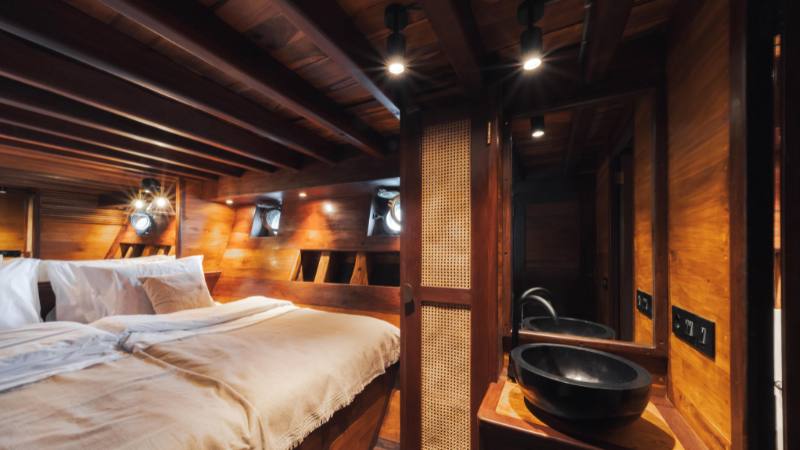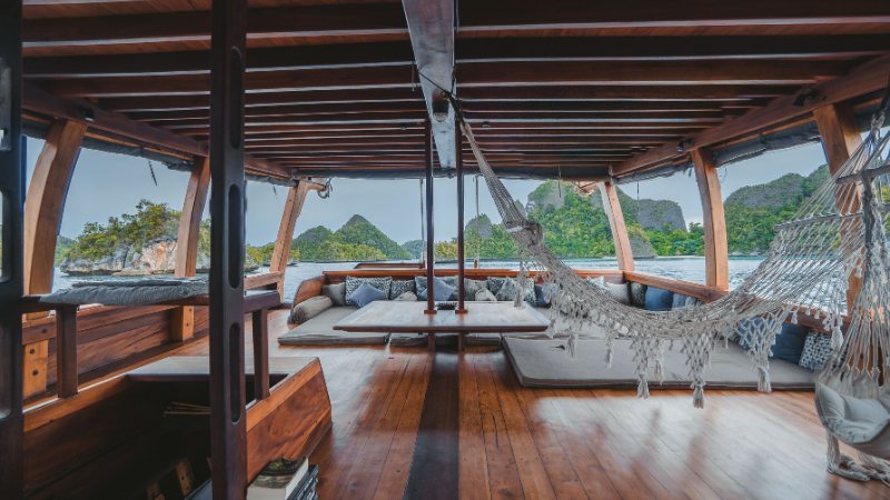 Nataraja is both elegant and adventurous at heart. Following her upcoming full renovation and relaunch in July 2024, all cabins will be upgraded with boho-chic interiors and soft furnishings. The Yacht’s extremely spacious deck layout and lounge areas have been designed with relaxation and authenticity in mind, and will now include a brand new bar area serving wines and cocktails. Nataraja will now feature three air-conditioned en-suite cabins accommodating a maximum of 8 adults — one double in the front of the yacht, 1 double in mid-ship, and one aft cabin with double and 2 single beds. The aft cabin has access to its very own swimming platform. Raja Ampat on Nataraja will give you an inspiration for your cruise on this luxurious yacht.